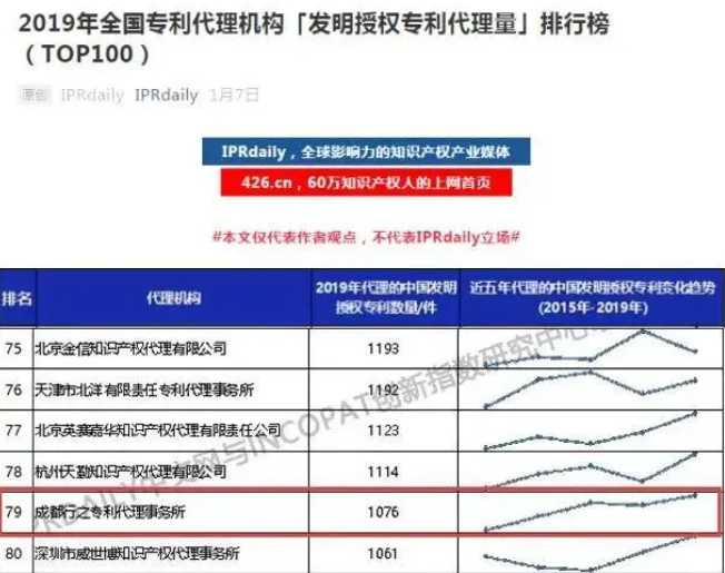 2017年以來,行之發(fā)明授權專利代理量在川內名列前茅,連續(xù)三年昂首跨入全國專利代理機構發(fā)明授權百強榜,名次不斷前進;近五年里,行之專利申請總量排川內第一;2019年以1076件的成績,首次突破四川專利代理機構年發(fā)明專利授權量1000大關,再次拿下全川第一;2020年上半年發(fā)明專利授權量繼續(xù)穩(wěn)居川內第一,用成績讓社會各界檢驗。