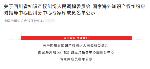 2020年9月,四川省知識產(chǎn)權保護中心發(fā)布了《四川省知識產(chǎn)權糾紛人民調解委員會、國家海外知識產(chǎn)權糾紛應對指導中心四川分中心專家?guī)斐蓡T名單》,行之9位專家經(jīng)過推薦評選入庫。